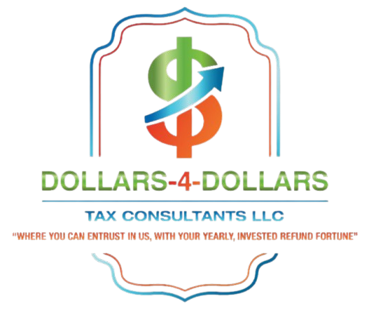 At Dollars-4-Dollars Tax Consultants LLC, we offer comprehensive tax solutions designed to help you maximize your returns and minimize liabilities. Whether you’re an individual or a business owner, our expert team is dedicated to providing tailored strategies that ensure compliance and financial efficiency.